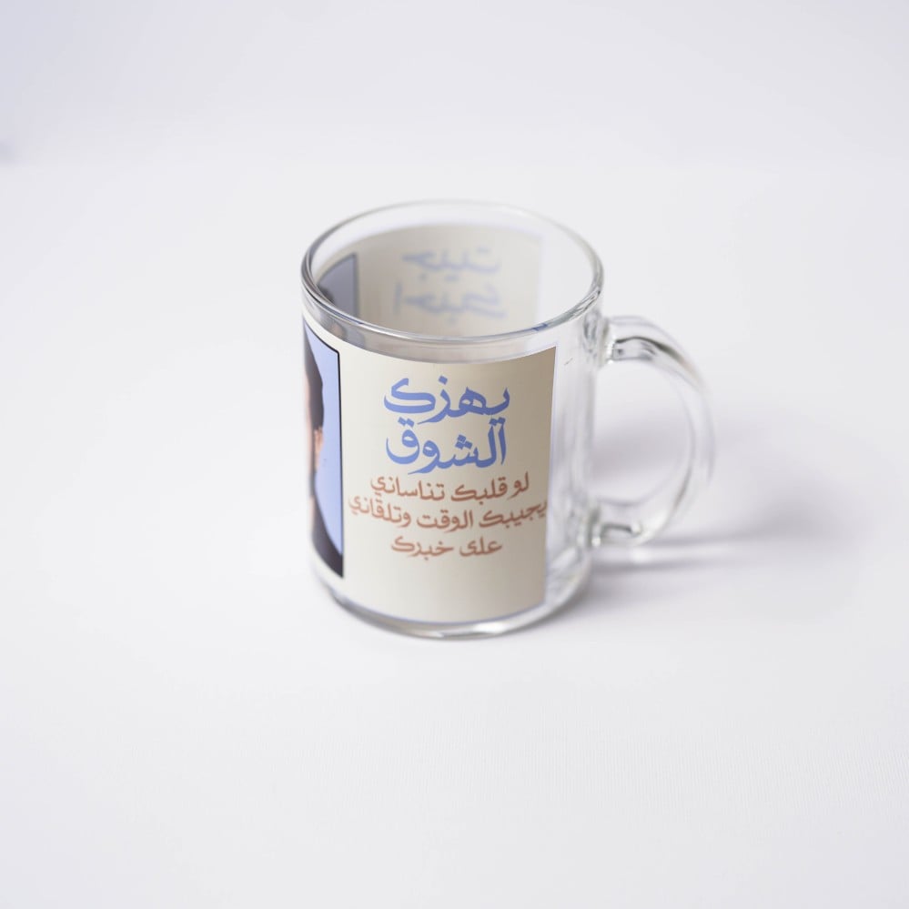 كُوب مطبوع عليه أغنيتين من أعذب أغاني ماجد المهندس " يهزك الشوق " و " جيت أحبك "