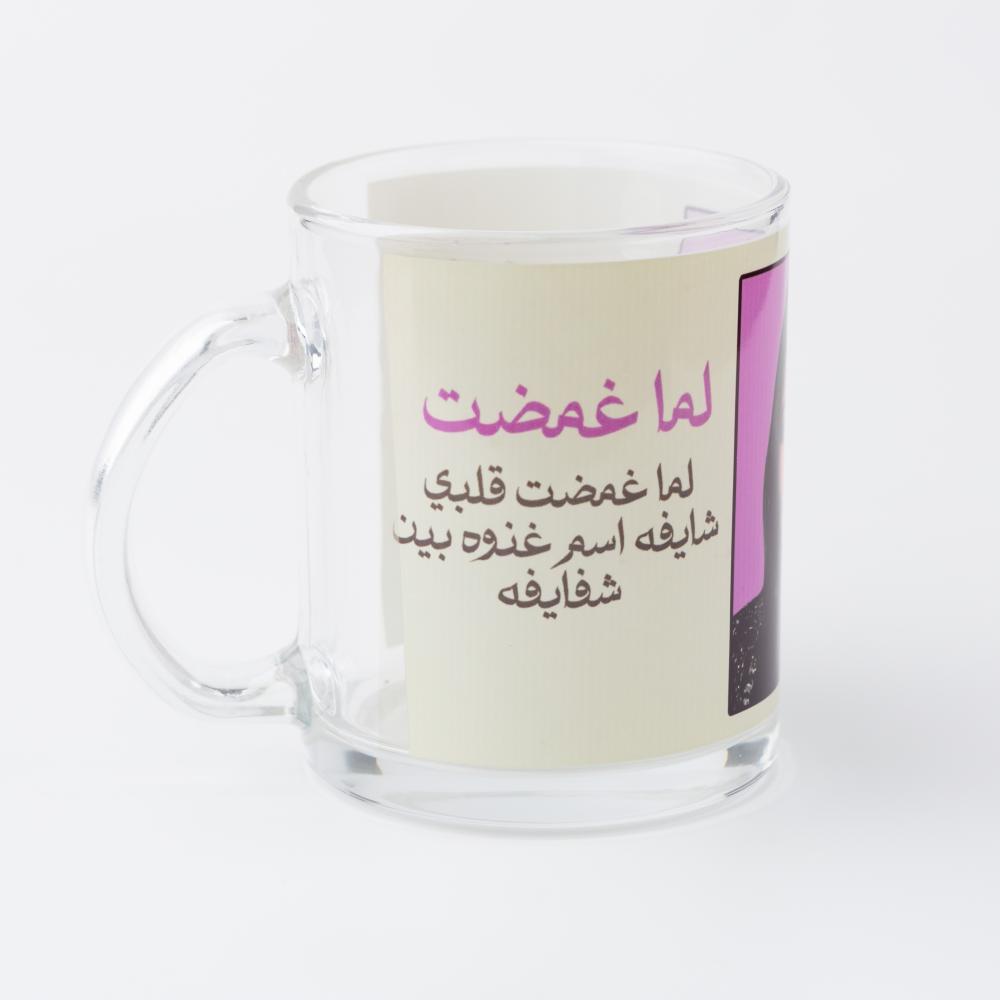 كُوب مطبوع عليه أغنيتين من أعذب اغاني شيرين