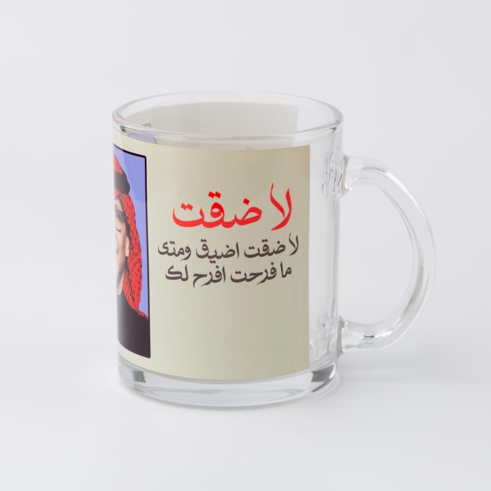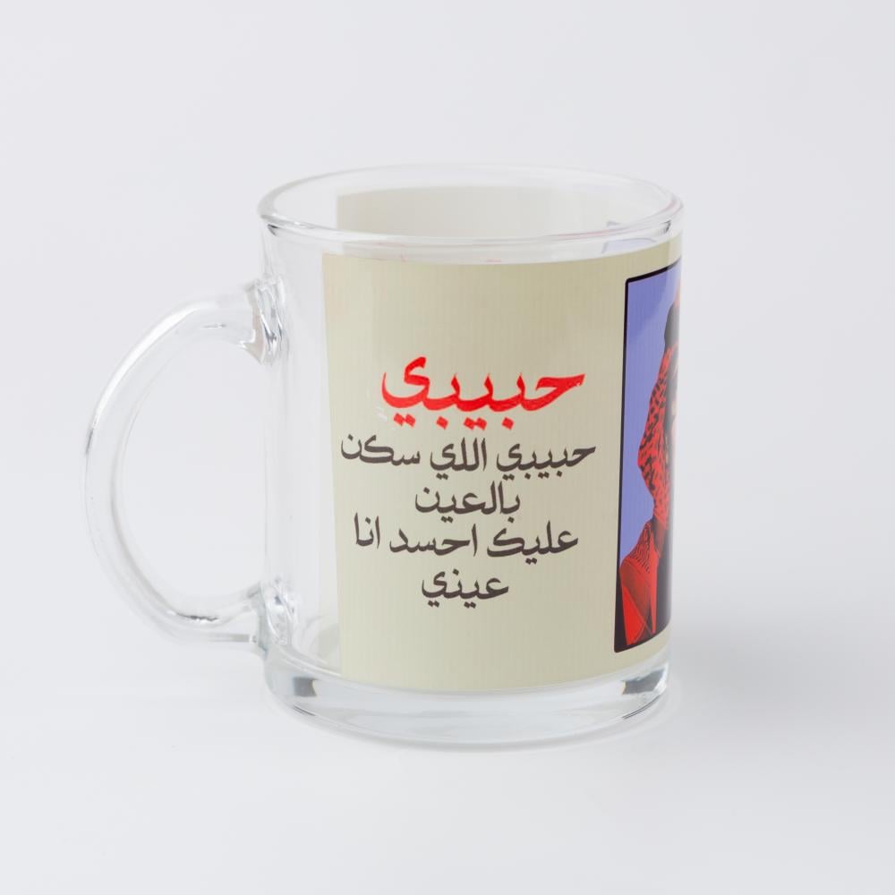 كُوب مطبوع عليه أغنيتين من أعذب أغاني عبدالمجيد عبدالله